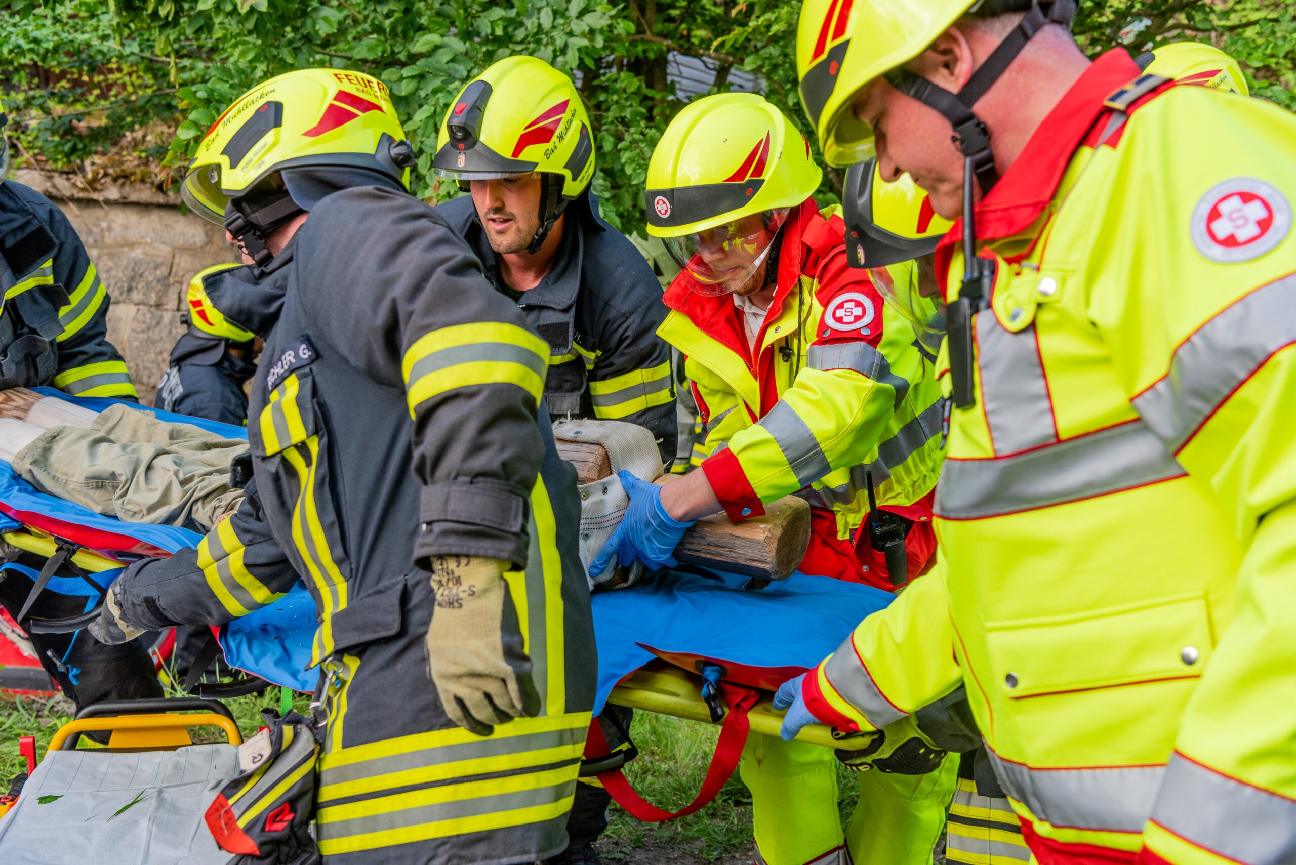 Besonderes Augenmerk bei der Übung wurde auf die Zusammenarbeit der beiden Feuerwehren und dem Rettungsdienst gelegt, welche sehr gut funktionierte.