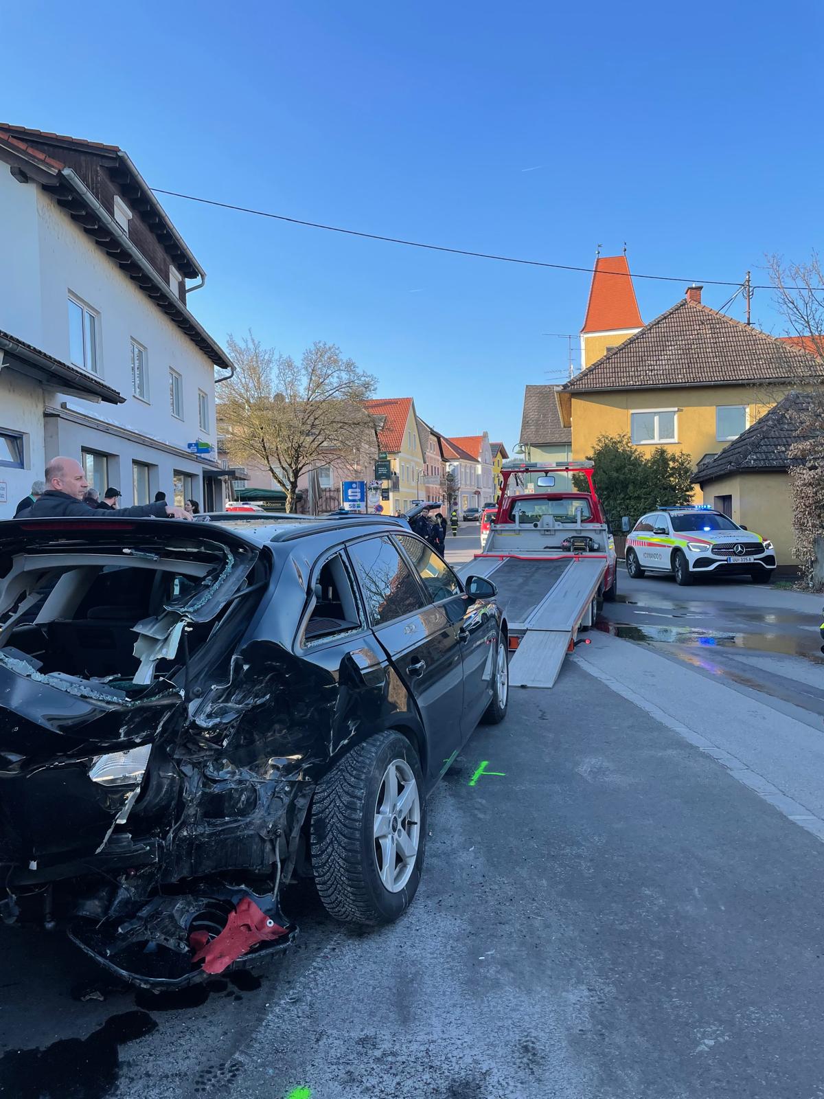 Es wurde zum Glück niemand schwer verletzt. Eine Person wurde durch unseren RTW-Mannschaft versorgt und zur Abklärung ins Krankenhaus nach Linz gebracht.